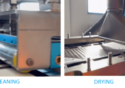 The cleaning process is highly efficient, taking just 3 to 6 seconds per plate, making it ideal for high-throughput production lines.