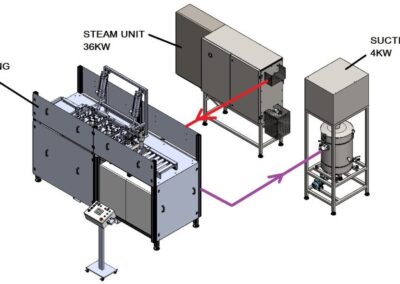 Steam cleaning systems, such as those integrated into tunnel washers, require minimal space—typically up to 300 cm in length—and can seamlessly integrate into existing production lines.